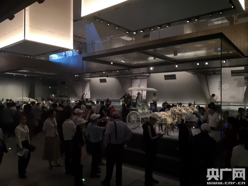游客參觀銅車馬博物館(總臺記者 雷愷 攝)