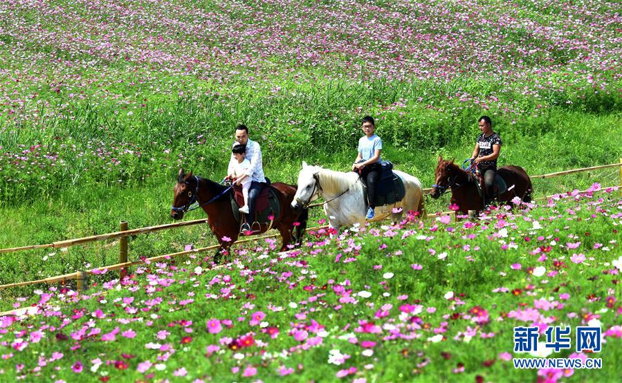 5月29日,幾名游客在安徽省六安市金安區(qū)東橋鎮(zhèn)一家生態(tài)園里騎馬觀花。