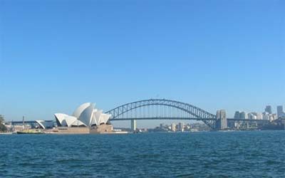 30日上午,我們在導(dǎo)游的帶領(lǐng)下,乘船從情人港出發(fā),水上游覽悉尼城。船隨著一聲哨音,慢慢駛出海港大橋,據(jù)介紹,這也是在整個悉尼港口風(fēng)景中,占最主要地位的風(fēng)景點(diǎn)。導(dǎo)游指點(diǎn)這座鐵橋,并說,這座港口大橋的跨度為1,149米,盡管有許多摩天大樓和它媲美,但它還是悉尼地平線上最高的一座建筑物。當(dāng)年設(shè)計(jì)這座大橋時,是想把它建成世界上最長的單拱橋,讓悉尼也有點(diǎn)東西夸耀與世界。然而,當(dāng)1923年這座橋開始建造后,美國的設(shè)計(jì)師在紐約的基爾范科爾航道上架設(shè)了一座巴茶橋,其跨度比悉尼大橋恰恰長去25英寸,且比悉尼大橋提前4個月完工。不過這座大橋仍然是南半球最大的拱橋。橋重3.9萬多噸,橋面寬49米,中間為雙軌鐵路、8條汽車道和自行車道,兩側(cè)為3米寬的人行道。萬噸巨輪可從橋下通過,南北橋畔各有兩座高出水面89米的橋頭堡襯托,大橋如長虹橫貫悉尼南北,氣勢磅礴。