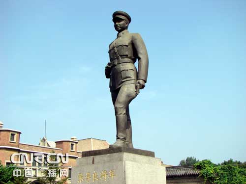來大帥府參觀,首先會到帥府前的廣場,廣場正中央矗立著一座張學良將軍的雕像。這座雕像于2005年“西安事變”69周年紀念日落成。雕塑的設計者為魯迅美術學院雕塑系教授張秉田先生。
