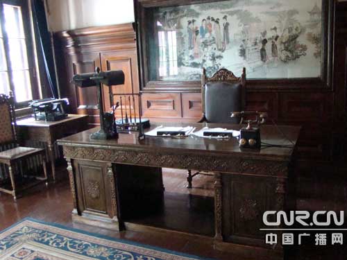 出了四合院東墻便是帥府的東院花園。位于北部的是當年張作霖與張學良父子起居、會客、辦公的帥府中心--大青樓。大青樓是一座三層羅馬式青磚洋樓,據(jù)說是仿照北洋軍閥政府總統(tǒng)曹錕在天津公館--曹家花園的樣式而設計建造的。其中,一樓是會客場所,用作接待中外要員,商定軍機大事之處;二、三樓是辦公和居住的地方。