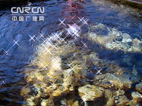 昆侖泉泉水很旺,日夜不停地向外噴涌,不時翻起層層小浪花,并發(fā)出響聲,全年水溫恒定為20℃。泉池四周由花崗石板砌成的多邊形圖案,中央一股清泉從池中驀然噴涌而出,形成一個晶瑩透明的蘑菇狀,將無數(shù)片碧玉般的花瓣拋向四周,似一朵盛開的蓮花,又似無聲四濺的碎玉落入一泓清池,然后奔向滔滔的昆侖河。