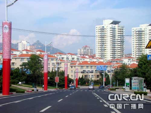 驅(qū)車行駛在緊依海畔的東海路寬闊的大道上,馬路一側(cè)紅白相間的祥云火炬造型的路燈桿異常醒目。在一些街頭還能發(fā)現(xiàn)“2008年奧運會標志”的盛裝景觀。青島的東部海岸線大約是近十年開發(fā)的。