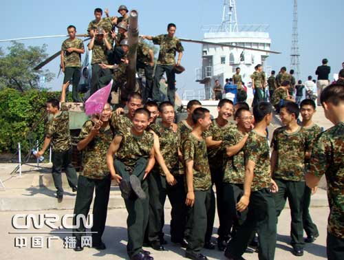一群新戰(zhàn)士在旅順海軍兵器館參觀