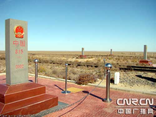 從新國(guó)門“國(guó)門文化展館”大門的出口走出來(lái)向北不遠(yuǎn),就是矗立在中蒙邊境上,二連與扎門烏德口岸的815、816號(hào)界碑,這也是中國(guó)邊界站點(diǎn)惟一的一處雙號(hào)雙立界碑,它距二連浩特市和蒙古國(guó)的扎門烏德市均為4.5公里。