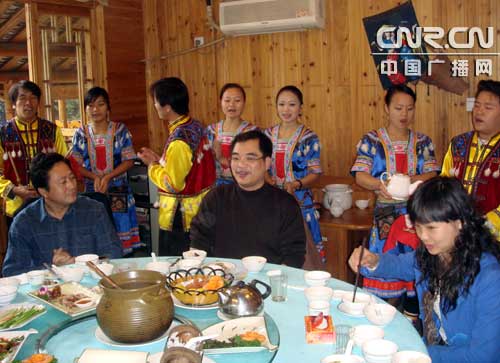 游客們品嘗民族風(fēng)味