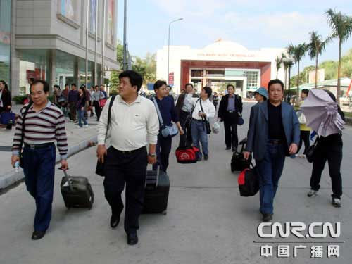 旅行團從東興口岸出關(guān)十分順利,大家走過北侖橋來到橋頭,興奮地以中國國門為背景留下了第一張合影。由于此次到越南游是落地簽證,所以記者所在的由16人組成的旅行團,在芒街口岸等待了四十多分鐘才辦好了進入越南芒街口岸的手續(xù)。