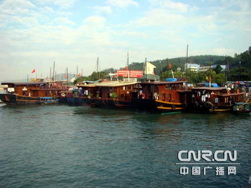 島上有一個觀景亭,記者同幾位游客頂著炎熱的酷暑一舉登上了431級臺階的觀景亭上。從這里可以俯瞰周邊美麗的海天風(fēng)景,真是一種賞心悅目的享受。下山來到海灘上,記者跳進大海暢游一番,頓時剛才登山時汗流浹背的暑熱,隨著清涼海水的沐浴變得舒適無比。下午14點半,游船返回下龍灣碼頭,至此,五個多小時的暢游海上桂林下龍灣也隨之圓滿結(jié)束。(記者 馮贛勇) |
