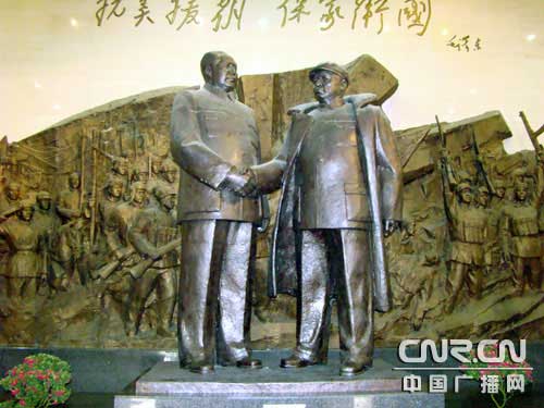 車友們進入鴨綠江斷橋景區(qū),首先看到的是立于橋頭的一座炮樓,它于1928年日本修建,是日本帝國主義侵略中國的見證。經(jīng)過炮樓登上斷橋,北面是一座志愿軍的雕像群,正中間是中國人民志愿軍總司令彭德懷元帥。
