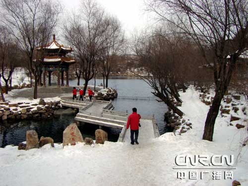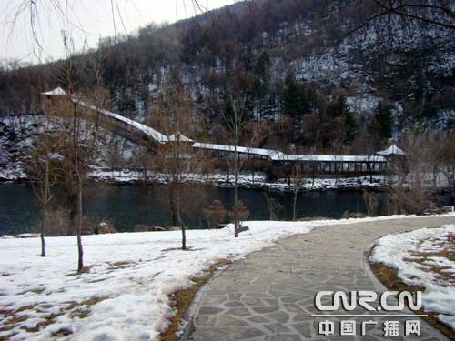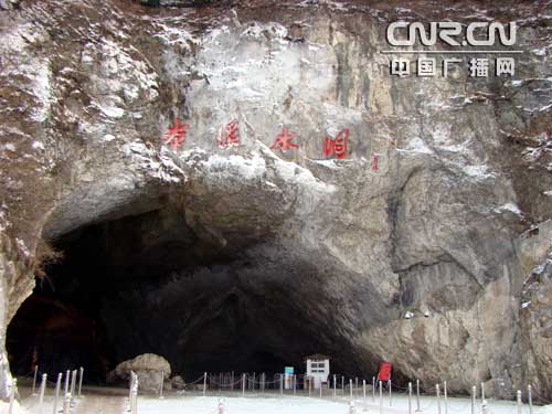 這里可能剛剛下過一場(chǎng)雪,整個(gè)水洞風(fēng)景區(qū)周圍到處是一片白雪皚皚的秀色。到底是旅游淡季,這里游人寥寥。來到售票處,發(fā)現(xiàn)票房已封門搬遷到了水洞景區(qū)辦公室。車友們購票后順著一條蜿蜒曲折的甬道向水洞入口走去。經(jīng)過一個(gè)亭子,穿過一座小橋即來到了水洞的洞口。
