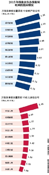 據(jù)新京報(bào)記者了解,財(cái)產(chǎn)險(xiǎn)投訴焦點(diǎn)為車險(xiǎn)理賠糾紛,2015年車險(xiǎn)理賠糾紛占理賠糾紛的88.07%,其問題集中在保險(xiǎn)公司定損金額低于維修費(fèi)用、配件換修及賠償標(biāo)準(zhǔn)的爭議等方面。而在涉及人身險(xiǎn)的投訴事項(xiàng)中,人身險(xiǎn)銷售誤導(dǎo)占違法違規(guī)投訴總量的84.58%,承諾高收益或不如實(shí)告知收益、以理財(cái)產(chǎn)品等名義銷售保險(xiǎn)產(chǎn)品、代客戶簽字等現(xiàn)象是投訴熱區(qū)。