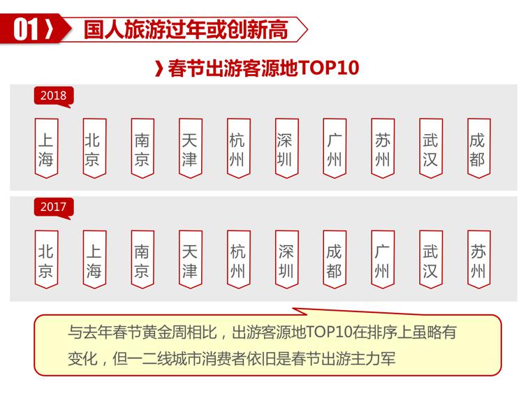 截至目前,上海、北京、南京、天津、杭州、深圳、廣州、蘇州、武漢、成都成為春節(jié)期間出游的十大客源地。與去年春節(jié)黃金周相比,客源地TOP10在排序上雖略有變化,但一二線城市消費(fèi)者依舊是春節(jié)出游主力軍。由于春節(jié)期間用戶旅游需求激增,有用戶甚至提前6個月便預(yù)訂了出游產(chǎn)品。目前,部分熱門產(chǎn)品已提前售空,人氣酒店也是一房難求。
