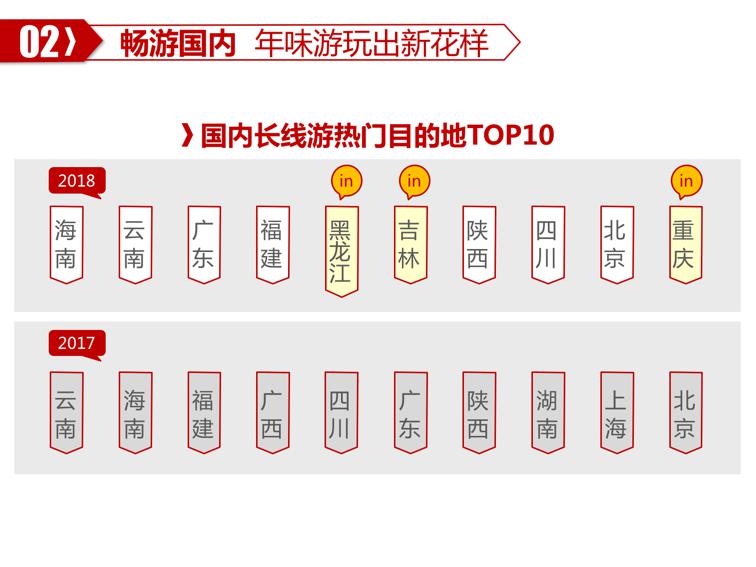 報告顯示,2018年春節(jié)期間,在旅游消費(fèi)持續(xù)升溫的情況下,旅游過年、出國過年成為用戶的主流選擇。國內(nèi)長線方向,海南、云南、廣東、福建、黑龍江等人氣目的地獲得了較多用戶的青睞;出境方向,泰國、日本、美國、法國等目的地國家受到追捧;此外,加拿大、俄羅斯“淡季不淡”成為2018春節(jié)“網(wǎng)紅”目的地,同時南極游升溫明顯。