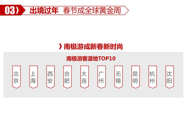今年春節(jié)南極游市場也異;鸨,去南極過大年成為新潮流。途牛旅游網(wǎng)監(jiān)測數(shù)據(jù)顯示,南極游預(yù)訂的用戶主要來自北京、上海、西安、合肥、大連、廣州、無錫、昆明、杭州、沈陽等地。從產(chǎn)品預(yù)訂情況看,“深入南極三島-亞特蘭蒂號華人包船+王企鵝群奇觀+阿根廷深度21日游”、“亞特蘭蒂號南極三島王企鵝攝影巡游21天”等受到用戶歡迎。
