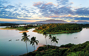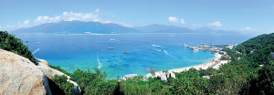 陵水黎族自治縣不僅因海而靠近世界,還因海而獲得一個自然恩賜的旅游天堂———“三灣三島兩湖一山一水”皆與大海有著密切關(guān)系!叭秊场奔聪闼疄场⑶逅疄、土福灣,“三島”即分界洲島、南灣猴島、椰子島,“兩湖”即新村瀉湖、黎安瀉湖,“一山”即吊羅山,“一水”即高峰溫泉。大海對陵水的這些自然眷顧猶如連串的珍珠排列在陵水蜿蜒漫長的海岸線上,因此陵水有著“珍珠海岸,美麗陵水”的美譽。
