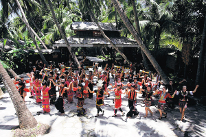 椰田古寨是展示海南省少數(shù)民族民俗文化的重要窗口之一,海南多彩的民族特色在此絢麗綻放,與陵水各景區(qū)相依托,共同構(gòu)筑了陵水“珍珠海岸·椰風(fēng)海韻”的精彩。
