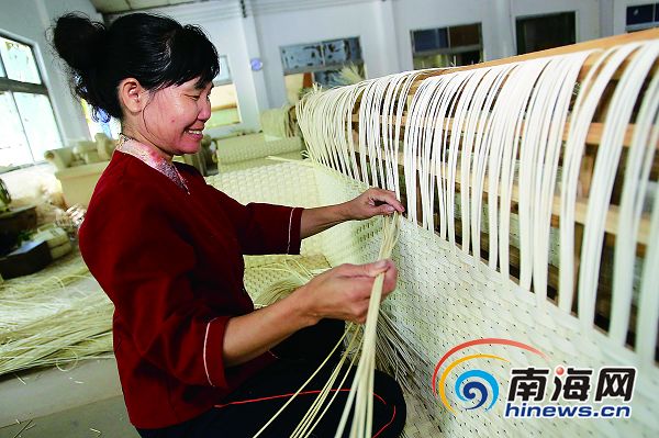 陵水藤竹工藝品有限公司工人在手工編織藤沙發(fā)。本報記者武威攝
