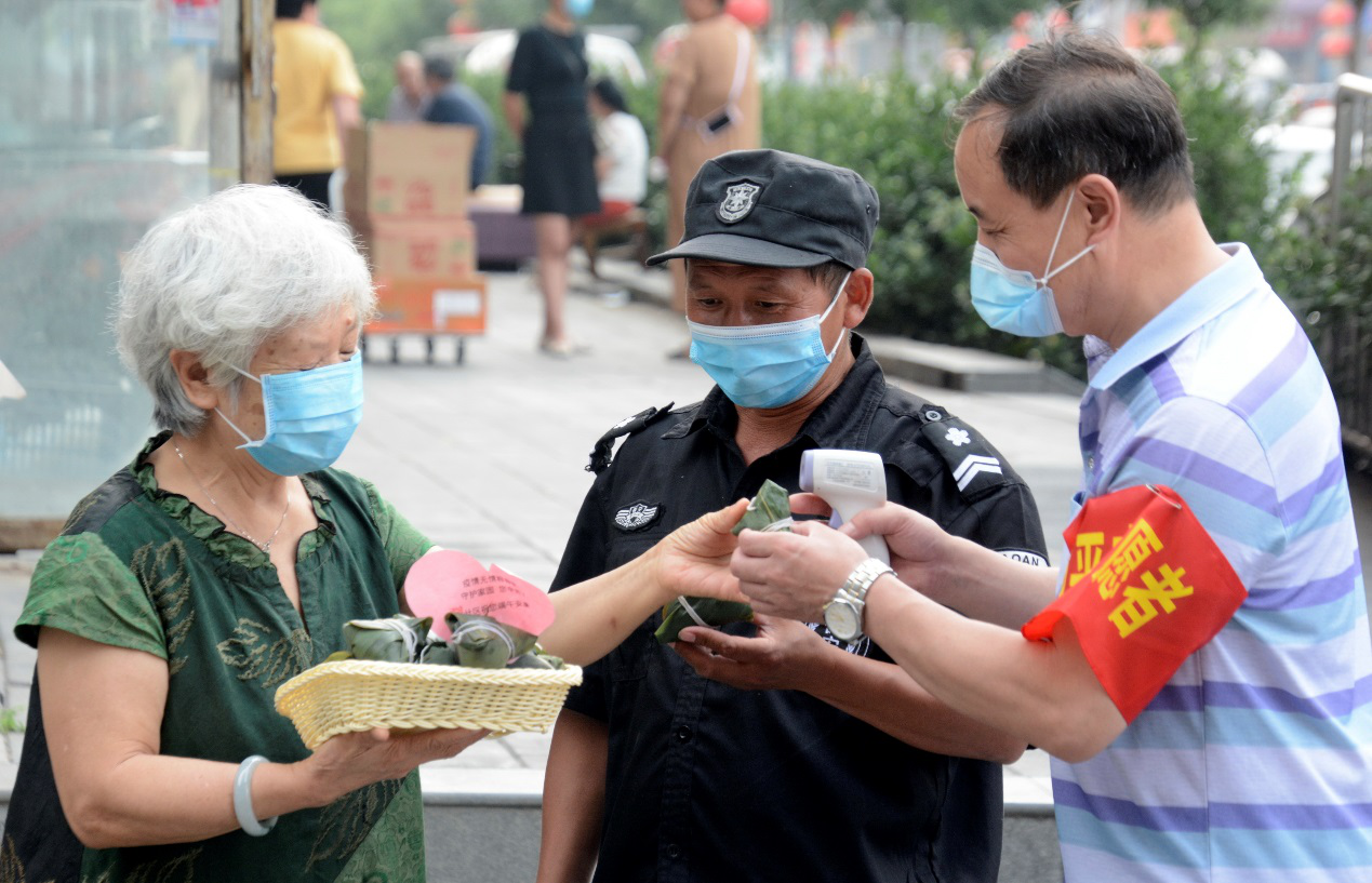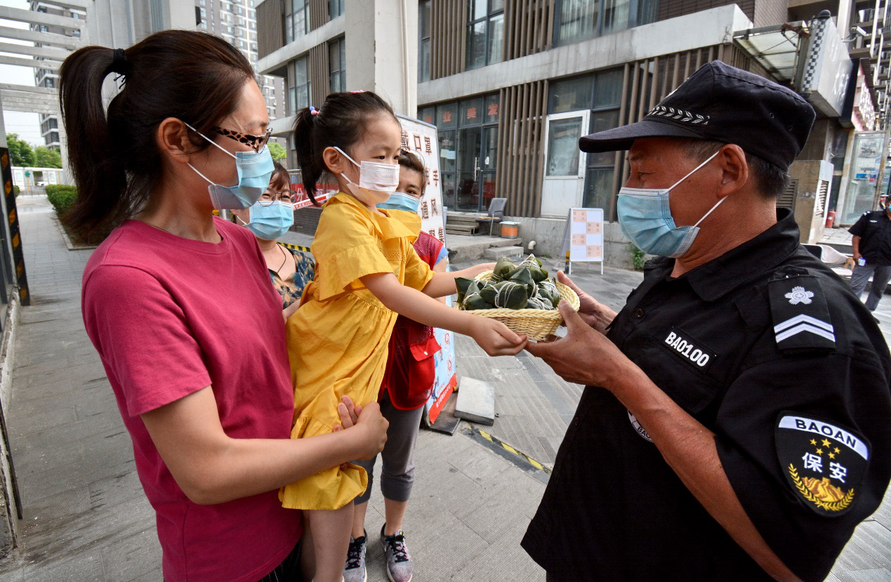 與此同時,還有居民表達(dá)了對社區(qū)一線防疫工作人員的慰問。不少居民將包好、煮好的粽子裝在籃子里,寫上暖心的話語,一起送給參與社區(qū)疫情防控的下沉干部、協(xié)管員、志愿者、保安。小籃子里滿滿的粽子,裝著滿滿的感謝,裝著滿滿的溫情,大家的心更近了,攜手抗疫的勁兒更足了,疫情期間的端午節(jié),我們不孤單、我們更團(tuán)圓。