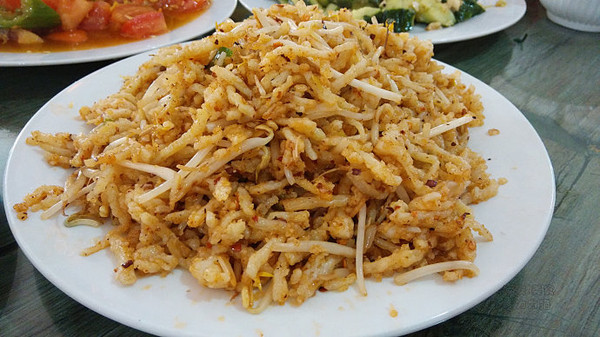 這個(gè)應(yīng)該是洋芋擦擦的做法,可是里面卻是豆芽菜。