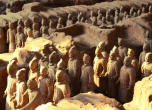 栩栩如生的銅車馬 秦始皇兵馬俑博物館,位于西安臨潼區(qū)秦始皇陵以東1.5公里處,是以秦始皇兵馬俑博物館為基礎(chǔ),以秦始皇陵遺址公園為依托的一座大型遺址博物院。目前一號坑中的兵馬俑,由于保護技術(shù)有限,大部分已回埋,只展出1000余個。
