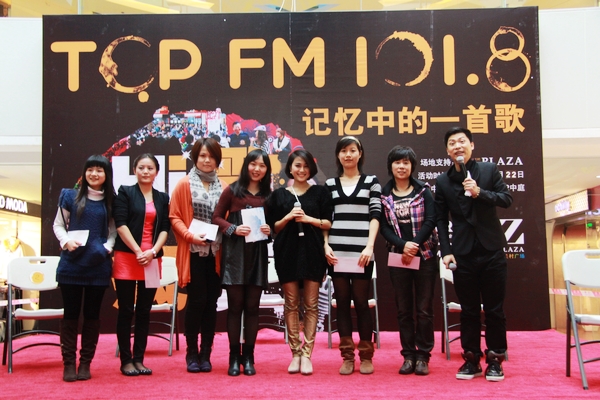11月12日,每月一次的TOP FM 101.8《Hi歌也瘋狂》節(jié)目的落地活動(dòng)在中關(guān)村廣場(chǎng)B2中庭如期舉行。當(dāng)天,數(shù)百名TOP FM的忠實(shí)聽眾蒞臨現(xiàn)場(chǎng)觀看節(jié)目,并參與到與主持人石壘的互動(dòng)當(dāng)中;顒(dòng)現(xiàn)場(chǎng)共8人參與Hi歌比賽,值得一提的是,在世紀(jì)光棍節(jié)(2011年11月11日)第二天的大好日子里,參賽的這8人當(dāng)中就有兩對(duì)相愛的情侶,由此可見,聽TOP FM 101.8,終身大事一定不難解決!