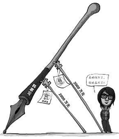 微博上的圍觀人群中就有人出餿主意了——如果韓寒自我“揭發(fā)”,便可凈賺2000萬,如果韓寒父親韓仁均自我“揭發(fā)”,便可凈賺4000萬,而韓寒至今最高的代言費也就1000萬。