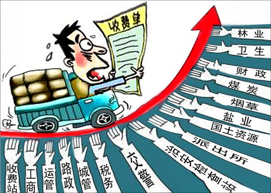 路卡路霸們以罰代管的行徑十九年沒有收斂。1994年,國務(wù)院就下發(fā)治理公路“三亂”的通知,此后至今,雖然治理“三亂”的各種通知、決定、規(guī)章層出不斷。但是至今,涉路部門緊抓罰款資源不肯撒手,無一退出。對(duì)大貨車運(yùn)輸罰款收費(fèi)的仍然有運(yùn)管、路政、收費(fèi)站、交警、派出所、治安檢查站、城管、林業(yè)、鹽業(yè)、煙草、財(cái)政、工商、煤檢、衛(wèi)生、動(dòng)物檢疫、國土資源等,另外還有企業(yè)罰款!大貨車運(yùn)輸和大貨車司機(jī)已經(jīng)成了最具增長潛力的罰款資源:成為我國獨(dú)特“罰款經(jīng)濟(jì)”的主脈。