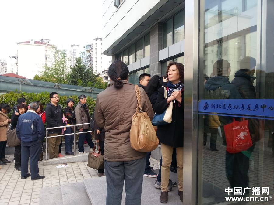 3月30日,上海“國(guó)五條”細(xì)則發(fā)布。圖為3月31日上海閘北房產(chǎn)交易中心營(yíng)業(yè)前,市民已排起長(zhǎng)隊(duì)等待,交易并沒(méi)因細(xì)則出臺(tái)減少。(中廣網(wǎng)發(fā) 周洪 攝)