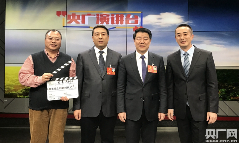 中國(guó)之聲觀察員白中華、黑龍江省綏化市北林區(qū)永安鎮(zhèn)永興村黨支部書記賈紅濤、內(nèi)蒙古自治區(qū)興安盟委副書記奇巴圖、中央人民廣播電臺(tái)中國(guó)之聲主持人雨亭