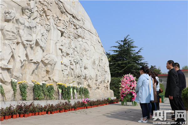 在“江淮英烈永垂不朽”的紀(jì)念碑前,大家整齊肅立,懷著沉重的心情追思革命先烈。他們?cè)诹私飧锩适碌耐瑫r(shí),向革命先驅(qū)和烈士們敬獻(xiàn)鮮花,表達(dá)對(duì)烈士的緬懷之情。