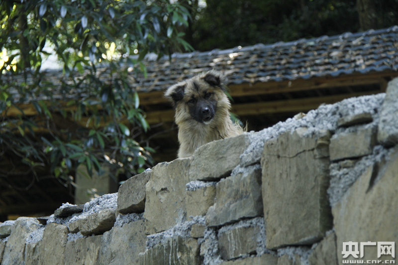 一戶吊腳樓前,兩只小狗正在瞌睡。聽見腳步聲,小狗警覺地叫吠起來。彭飛走在前喊了聲,揮揮手,小狗嗚嗚地坐回坪地里搖尾巴。