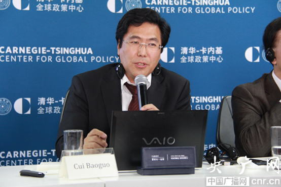 清華大學(xué)新聞與傳播學(xué)院崔保國教授演講題為《“全球化”的反思》(央廣網(wǎng)_鄒佳琪攝)