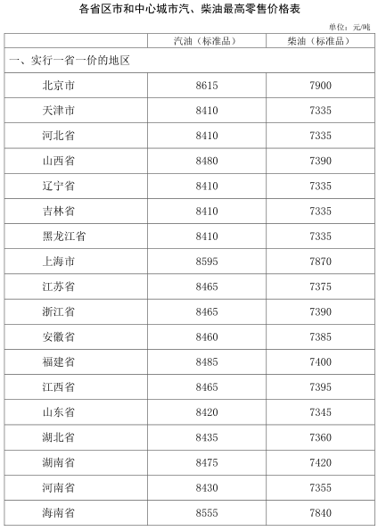 三、各地汽、柴油最高零售價(jià)格和批發(fā)價(jià)格等額調(diào)整。調(diào)整后各。▍^(qū)、市)和中心城市汽、柴油最高零售價(jià)格水平見附件2。