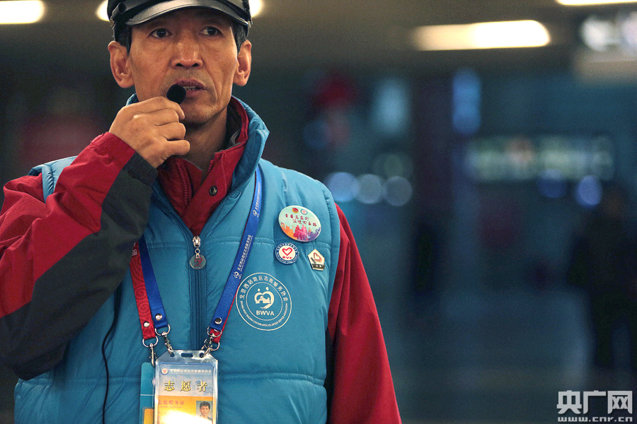“坐火車的旅客,請沿兩側(cè)扶梯上樓,上兩層,到地面上進(jìn)站!”春運(yùn)正酣,作為重要交通樞紐的北京西站聚滿了返鄉(xiāng)的旅客。人們提著大大小小的行李,眼里滿是將要?dú)w家的喜悅。一位頭帶擴(kuò)音器、身穿藍(lán)背心的中年人腰板挺得筆直,在人群中尤為顯眼。他,便是人稱“西站老劉”的北京西站志愿者劉建華。(圖/文 高藝寧 視頻 李聰格)