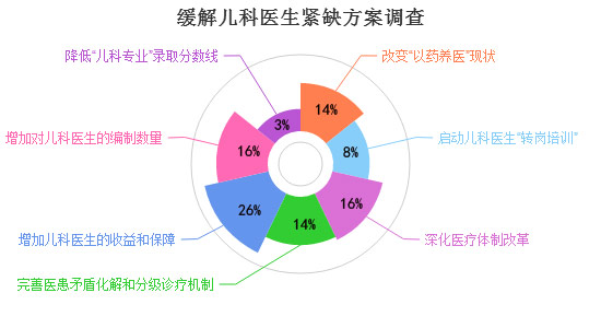 問題有了,更重要的是解決。在如何解決兒科醫(yī)生緊缺的問題上,更多的網(wǎng)友認(rèn)為應(yīng)該提高醫(yī)生的待遇和保障。同時(shí),增加兒科醫(yī)生編制數(shù)量和深化醫(yī)療體制改革也各有16%的被調(diào)查者表示認(rèn)同。