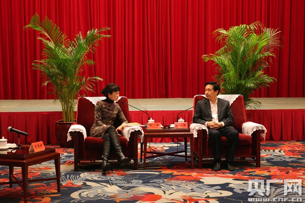 杭州市委書(shū)記趙一德(右)接受記者采訪 央廣網(wǎng)記者高藝寧攝