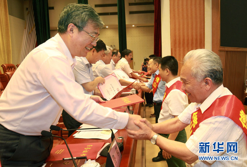 佛山市委書記魯毅、市長朱偉等人為劉澤棉(右1)等首屆“佛山·大城工匠”頒發(fā)證書。新華網(wǎng)發(fā) 甘建華攝