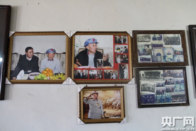 彭俊明老人家墻壁上懸掛著老人的許多照片(央廣網 孫永政/攝)