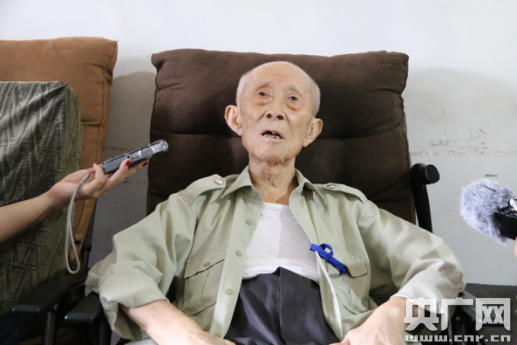 彭俊明老人向記者講述紅軍長征的故事(央廣網 孫永政/攝)