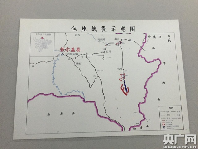 包座位于若爾蓋縣東南部,分為上、下包座,處于群山之間,周圍盡是原始森林,地勢十分險要,是紅軍北出四川進軍甘南的必經(jīng)之路。包座為藏語"務柯"的譯音,意為包座溝筆直像"槍膛",1935年9月,這支槍膛里裝滿了炮彈,火藥味彌漫著整個村莊。