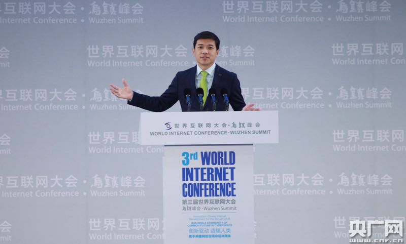 百度公司董事長兼首席執(zhí)行官李彥宏在第三屆世界互聯(lián)網(wǎng)大會(huì)全體會(huì)議上發(fā)表主旨演講 央廣網(wǎng)記者韓靖攝