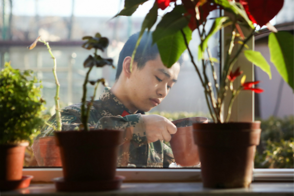 在戰(zhàn)士們的宿舍,除了一如既往疊得如豆腐塊一般的被子,窗臺(tái)上一排排姹紫嫣紅的盆栽尤為引人注意。李多告訴記者,每有空閑,戰(zhàn)士們都會(huì)輪班給花草澆水。用李多的話說,這些花草妝點(diǎn)了環(huán)境,也給他們的生活帶來更多情趣。