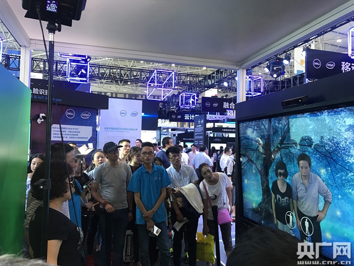 2017數(shù)博會(huì)展館內(nèi)各種展出項(xiàng)目吸引大家排隊(duì)體驗(yàn)(成苗苗 攝)