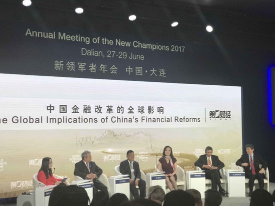 央廣網(wǎng)大連6月28日消息(記者 王明月) 6月27日至29日,2017年夏季達(dá)沃斯論壇在遼寧大連舉行。昨日,在“中國(guó)金融改革的全球影響”分論壇上,清華大學(xué)經(jīng)濟(jì)管理學(xué)院、Freeman經(jīng)濟(jì)學(xué)講席教授李稻葵、渤海銀行董事長(zhǎng)李伏安、摩根大通銀行董事總經(jīng)理、亞太地區(qū)副主席李晶、德意志銀行首席數(shù)據(jù)官JP Rangaswami等悉數(shù)出席,并就中國(guó)金融改革中的開(kāi)放性等問(wèn)題展開(kāi)討論。
