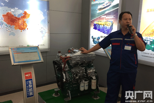 玉柴集團(tuán)副總裁譚貴榮介紹新型發(fā)動(dòng)機(jī) 央廣網(wǎng)記者王曉蕾 攝