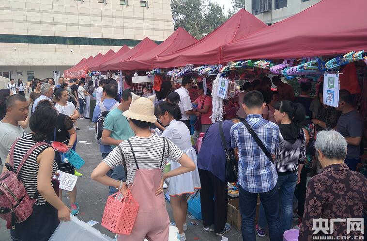 北京這幾天氣溫重返“夏日模式” 酷暑下家長為孩子們準備生活用品 央廣網(wǎng)記者 王晶 攝