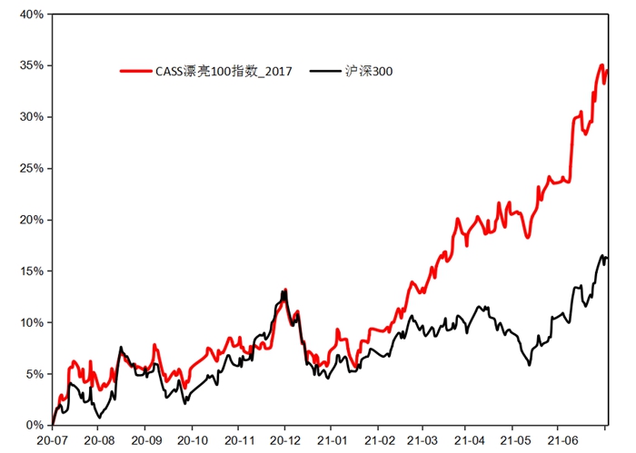 漂亮100指數(shù)與滬深300指數(shù)業(yè)績對比圖