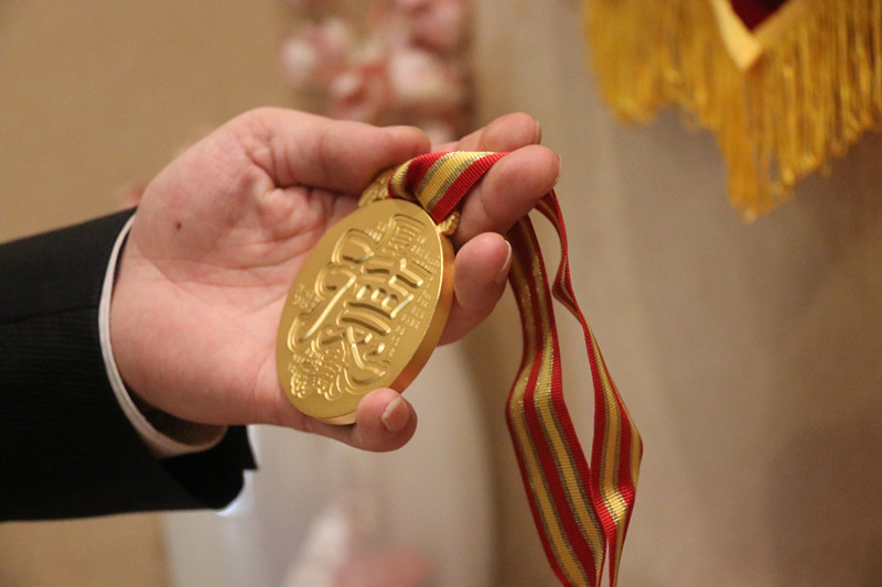 朱捷向記者展示自己所獲的“全國(guó)道德模范”獎(jiǎng)牌(央廣網(wǎng)記者 林馥榆 攝)