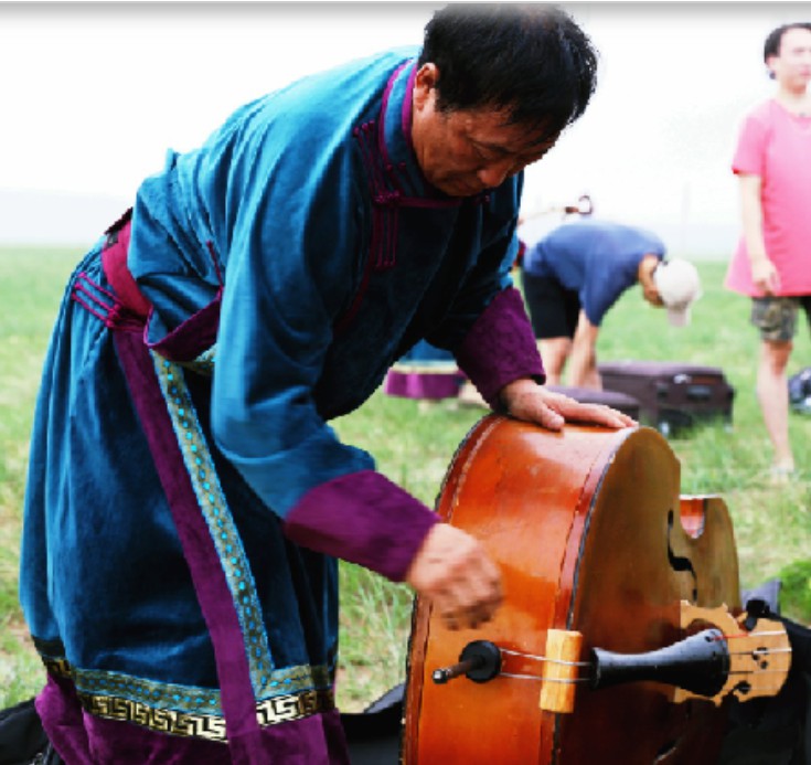 烏力吉圖在整理樂器 新華網 李倩攝