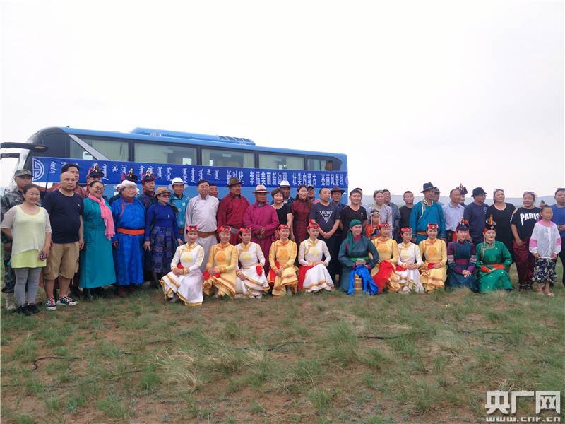央廣網錫林浩特7月22日消息(記者王晶)草原上空剛還是灰白臉色,眼下卻漸漸沉下來,似乎在預謀著一場大雨。雖說天公不作美,但蘇尼特烏蘭牧騎的十幾位隊員們還是來了。